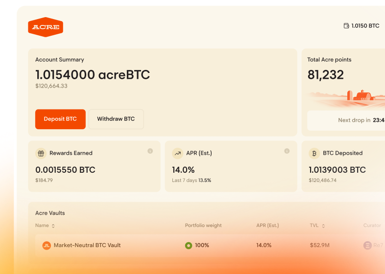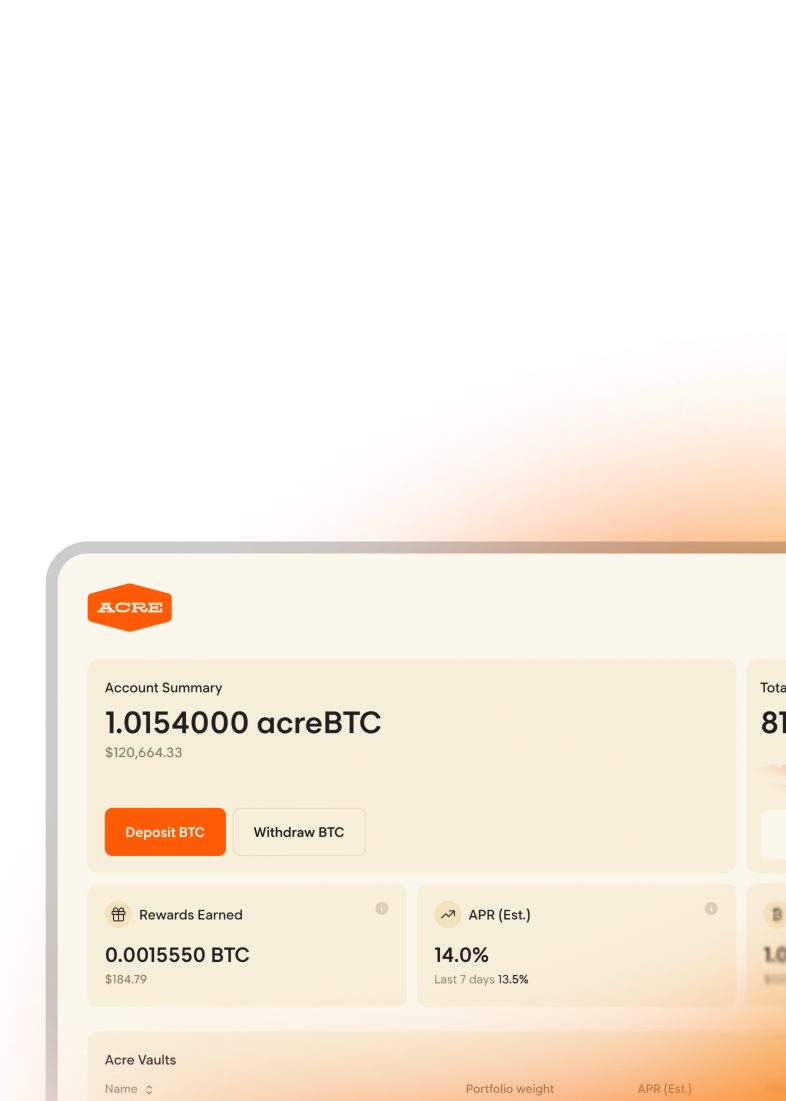 Acre’s founding vault offers access to curated onchain strategies—without compromising self-custody or onchain transparency.