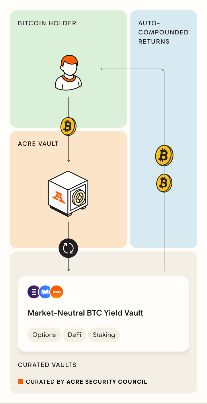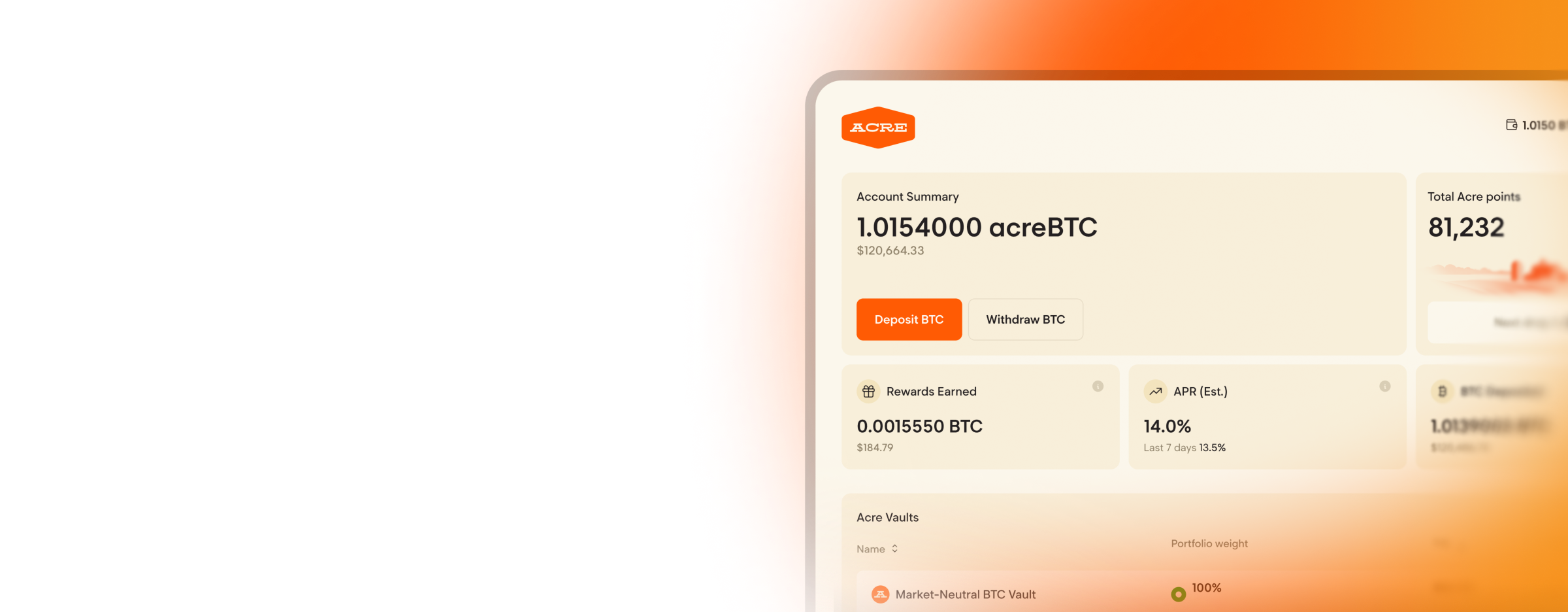 Acre is a protocol that allows Bitcoin holders to earn additional BTC while retaining control of their private keys. Acre’s mission is simple: Compound bitcoin without compromising its principles of decentralization, transparency, or financial sovereignty.